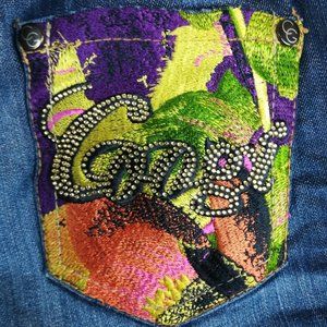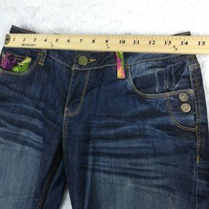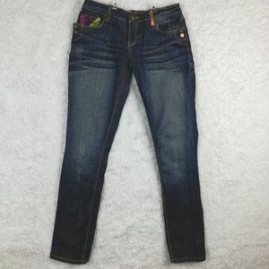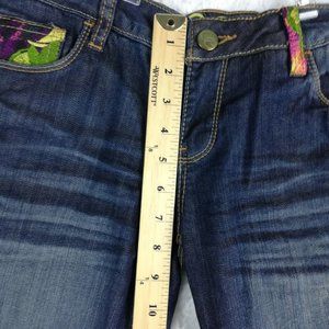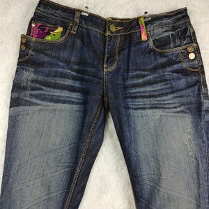 Coogi Womens Jeans Straight Leg Blue Denim Embroidered Jeweled Distressed 8