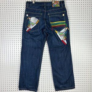 Coogi Y2K Stitched Baggy Jeans 36x33 Colorful Sneakers High Top Hip Hop Flap 90s