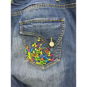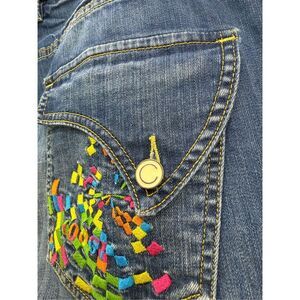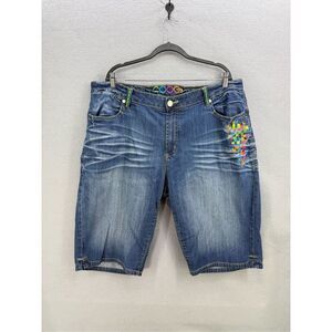 Coogi Womens Blue Colorful Blocks Embroidery Bermuda Jean Shorts Size 22