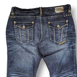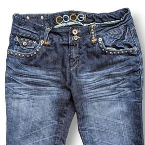 Coogi Y2K Womens Denim Jeans Boot Cut Stud Double Button Blue Med Wash Size 11/1