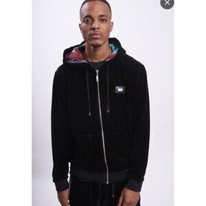 Coogie Black Velour Zip Up Jacket Tracksuit Sporty 3D Knit Multicolor Casual 3XL