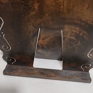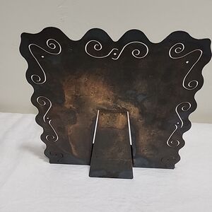 Enhance your kitchen decor with this elegant brown metal cookbook holder, Its intricate design adds a touch of sophistication to any room.