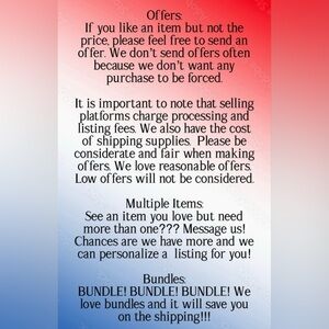 Please DO NOT ask what is the lowest we would sell this for. If interested, PLEASE MAKE AN OFFER!!!Reasonable offers and bundles are WELCOME!!!