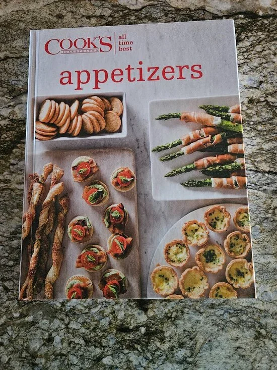 Brand New Cook's Illustrated All Time Best Appetizers Cookbook. Every recipe is accompanied by a colored photo. Over 150 pages of recipes along with helpful tips.