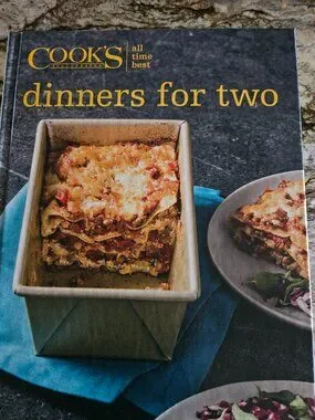 Brand New Cook's Illustrated Dinners for Two Cookbook. Every recipe is accompanied by a colored photo. Over 150 pages of recipes along with helpful tips.