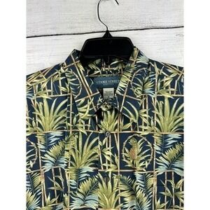 Cooke Street Camp Shirt XL 100% Cotton Blue Bamboo Pineapples Palm Leaves Aloha