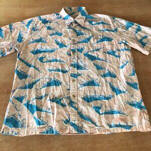 Cooke Street Hawaiian Shirt Men XL Blue Geometric Button Up Pocket Short Sleeve