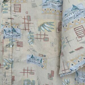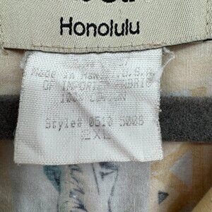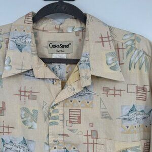 Vintage Cooke Street Hawaiian short sleeve button up shirt. This 2X size men's shirt is made from comfortable cotton and features a pocket. Its vibrant Honolulu design is perfect for those summer days or tropical vacations.