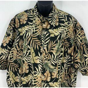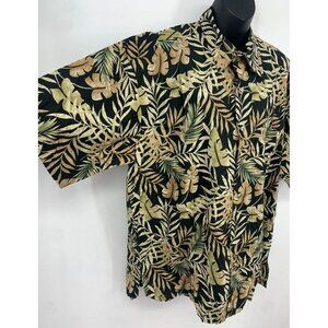 Cooke Street Men Hawaiian Shirt Size Large Black Tan Leaf Tropical Aloha Collar