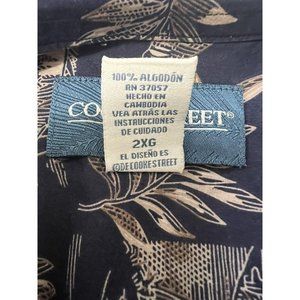 Cooke Street Mens 2XL Aloha Hawaiian Shirt Button Down Blue Tan Excellent Palm