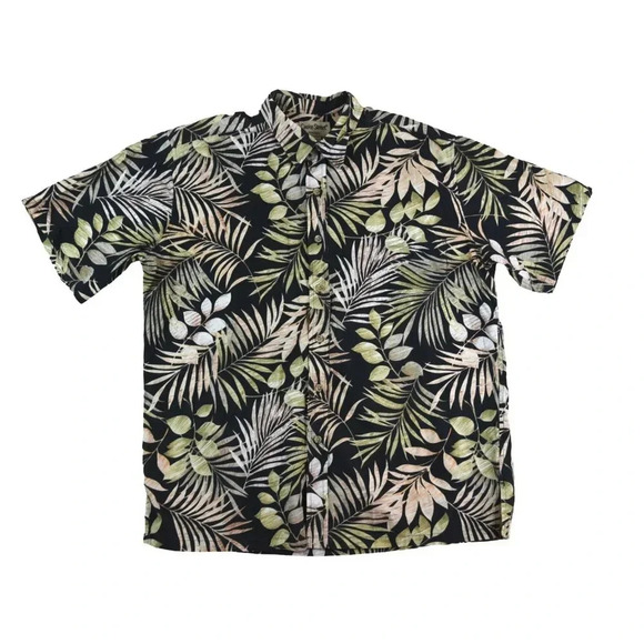 Cooke Street || Men's Button Down Hawaiian Palms Flower Shirt Black Green XL