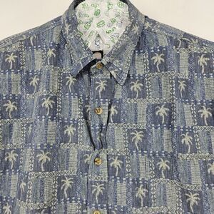 Cooke Street Shirt Mens 2XL Hawaiian Short Sleeve Palm Tree Blue Button Up. Good pre owned condition, please see all the pictures before buying.