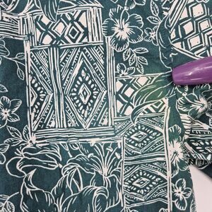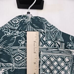 Cooke Street Shirt Mens Large Hawaiian Green Tapa Camp Button Up All Over Print. Good pre owned condition, has discoloration on the back, please see all the pictures before buying.