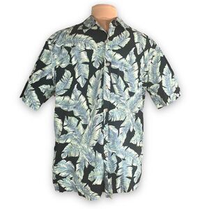 Cooke Street Top Black Green Tropical Palm Printed Button Down Hawaiian Shirt