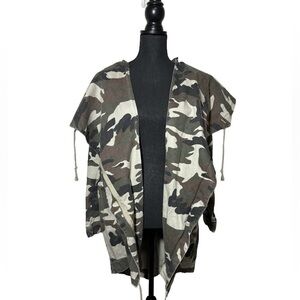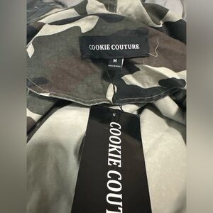 NWT Cookie Couture Hooded Camo Zip Front Jacket Size Medium. 100% Cotton, Front Asymmetrical Zip Closure, attached hood with drawstrings, 2 Flap side pockets, Drawstring at hemline.