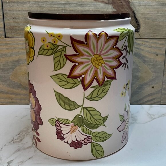 Dash of That - Zinnia Floral Cookie Jar Storage Container with Wooden Lid