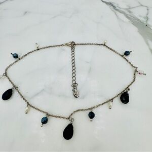 Cookie Lee Black Bead & Freshwater Pearl Necklace Dainty Dangle Black Silver