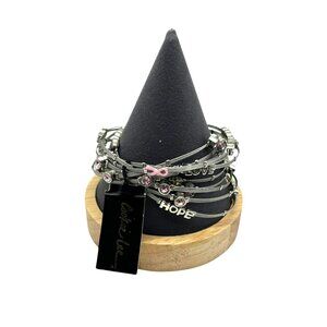 Cookie Lee Bracelet Set Bangle Breast Cancer Awareness Silver Tone HOPE LOVE NEW