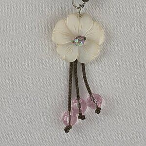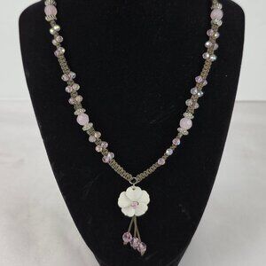 Cookie Lee Floral Pink Glass Beads Lotus Flower Macrame Necklace Adjustable