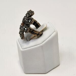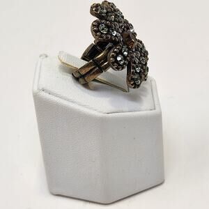 Cookie Lee Flower Rhinestone Brass Tone Stretch Cocktail Ring Statement Jewelry