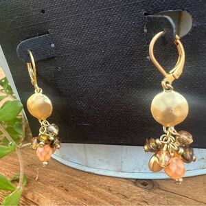 Matte gold tone multi faceted drop earrings. Beads are earth tones and blush colored.