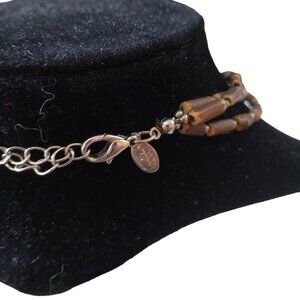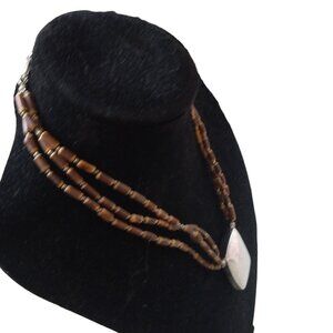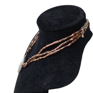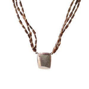 Vintage multi-strand beaded necklace with silver colored pendant signed Cookie Lee is 18 inch and has extender.