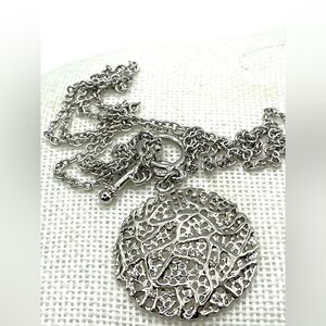 Cookie Lee Necklace Silver-tone toggle closure Crystals round Sphere Long 32”