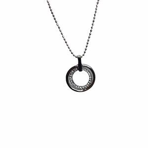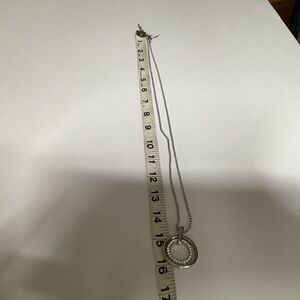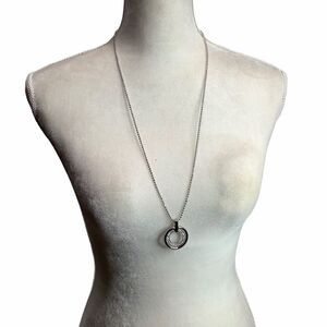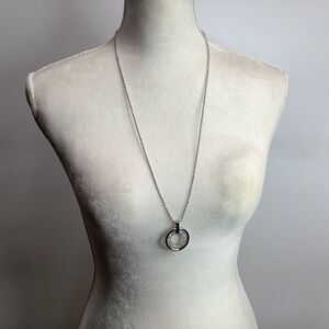 Cookie Lee Silver Tone 2 Circle Hoop RhinestonePendant Necklace 32" total
