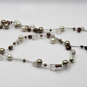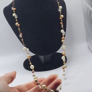 Cookie Lee Necklace Station Necklace Long 34in | Materials: simualted pearl, simulated crystal | Length: 34in | Clasp: lobster | Signed? Cookie Lee | Excellent vintage condition