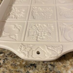 This vintage Fruit and Floral themed cookie baking mold made of stoneware by Workshops of Gerald E. Henn is in great preowned condition.