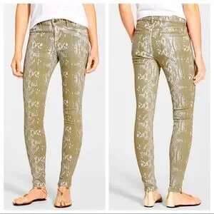 Python print skinny stretchy jeans by cookie Johnson. Olive/Army Green