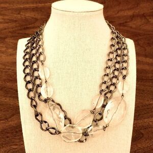 Gunmetal layered chains and chunky, clear acetate stones. Cool statement piece!