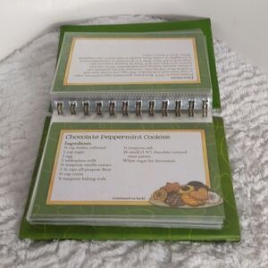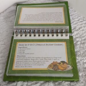This Brownlow Cookie easel recipe book measures approximately: 6" x 7" x 1-1/4". It's an easy to use recipe book with 24 cookie recipes and 24 blank designer cards to add your favorites. Built in easel for easy reading. Pre-owned and in like new condition. All offers welcome.
