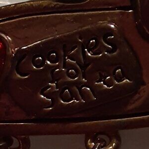 Cookies for Santa Brooch Brown with red, green, and white enamel 1 and 3/4 X 1 and 1/2 Inches