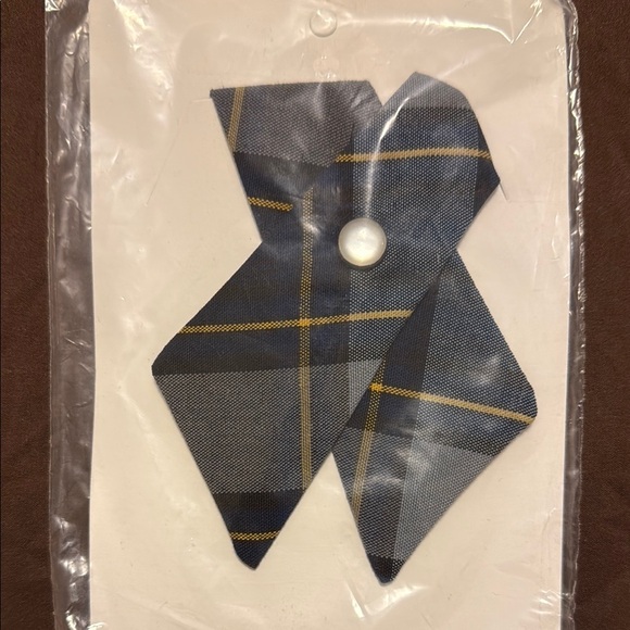 Stylish plaid bow tie featuring yellow stripes. NWT