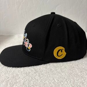 Sleek black Cookies snapback hat with bold multicolor embroidered logo. Super versatile — pairs with tons of fits and even reppin' sports teams like Denver Nuggets, Pittsburgh Steelers, Warriors, Bulls, and more.
