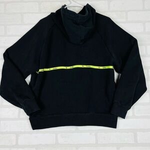 Cookies Tech Pack Black Pullover Hoodie Mens Sz Medium Streetwear Skater Pocket. Stylish black men's sweater with a striking yellow accent. Perfect for casual outings. Very Good Used Condition, no drawstring included. Neon Logo running across front. 23” chest, 24” length. #891 1.8.5