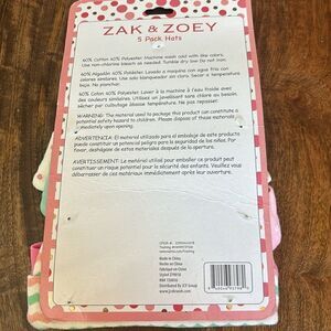 Give a 5-pack set of Zak & Zoey beanie hats to keep baby's head warm. Zak & Zoey 5-pack beanie hats Jersey construction Print designs as shown Foldover brims 60% cotton, 40% polyester Machine wash cold.