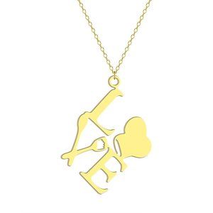 Cooking Love Gold Necklace, Love to Cook Chefs Pendant Necklace, Baking