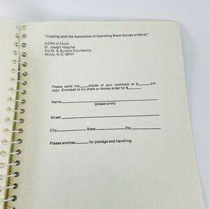 Here's a unique piece of culinary and medical history: the "Cooking With the Association of Operating Room Nurses of Minot, North Dakota - St. Joseph's Hospital" vintage spiral-bound cookbook! This complete cookbook offers a glimpse into the home kitchens of healthcare professionals, likely filled with cherished community recipes.