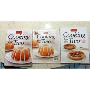 Lot of 2 hardcover America's Test Kitchen 2011 and 2012 "Cooking for two" plus magazine cookbook. Very good pre-owned condition. One hardcover book has crayon mark on paper cover. See photo. Each hard cover book MSRP $35. Magazine MSRP $9.95