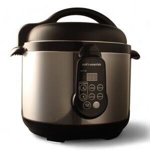 The Cook's Essentials pressure cooker is safe and simple to use. It combines steam heat and pressure while retaining the nutrients and flavor of the food. Shortens cooking time by 70%. Put the ingredients in the pot set the timer and enjoy a delicious home cooked meal. Cook fork tender stew in 30 minutes roasts in under an hour and fruits and vegetables in minutes. The removable 5 qt non-stick cooking pot provides even heat distribution while the outer housing remains cool to the touch. Fully programmable timer has a delay function for up to 8 hours. Built in thermostat for automatic temperature control. Steam release valve allows you to release pressure quickly.