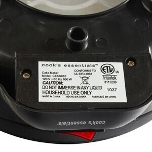 This is a Cook's Essentials electric puff pancake maker with a black finish. It features seven individual molds designed for cooking spherical pastries like Danish ebelskivers, Japanese takoyaki, or filled pancake puffs.