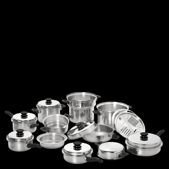 Discover the magic of cooking with cookware from iCook™. Purchase individual pieces or complete sets of cookware made from multi-layer stainless steel, with a carbon steel and aluminum core for even heat distribution. The perfect combination of healthy and easy!