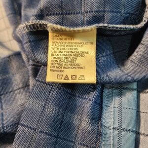 The Cool 18 Performance Haggar Clothing Blue Checked Golf Shirt in size L is a stylish and functional polo shirt designed specifically for golf enthusiasts. The shirt features a classic blue check pattern and is tailored for regular sizing in men's department. Made by the reputable brand Haggar, this shirt is sure to provide comfort and performance on the golf course, making it a practical and fashionable choice for any golfer.