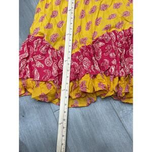 Cool Change Womens Yellow Red Paisley Elastic Waist Ruffle Hem Midi Skirt Size S