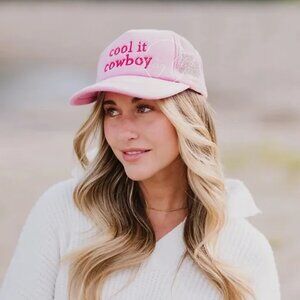 Keep it cool in this hat, cowboy! A girly touch to the tomboy look, this pink trucker hat is full of sass and cuteness. Pair with all your cute two piece active sets.