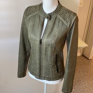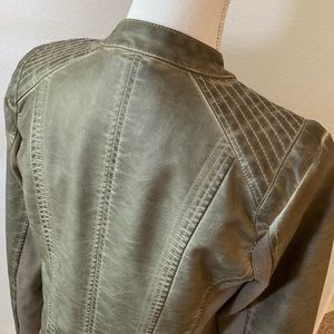 Polyester, but feels like real leather and has a nice thickness to it, but also a lot of stretch, so it’s really comfortable and classy!
