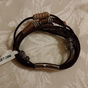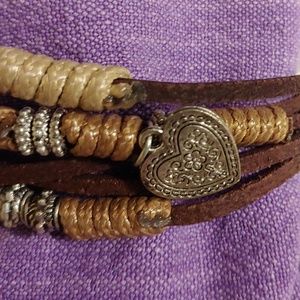 This is a fun Casual Cool Friendship Bracelet made of brown leather, beads and silver heart charm with a great magnetic closure.