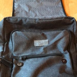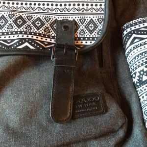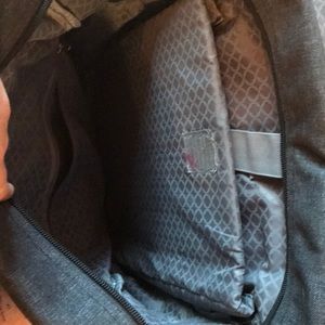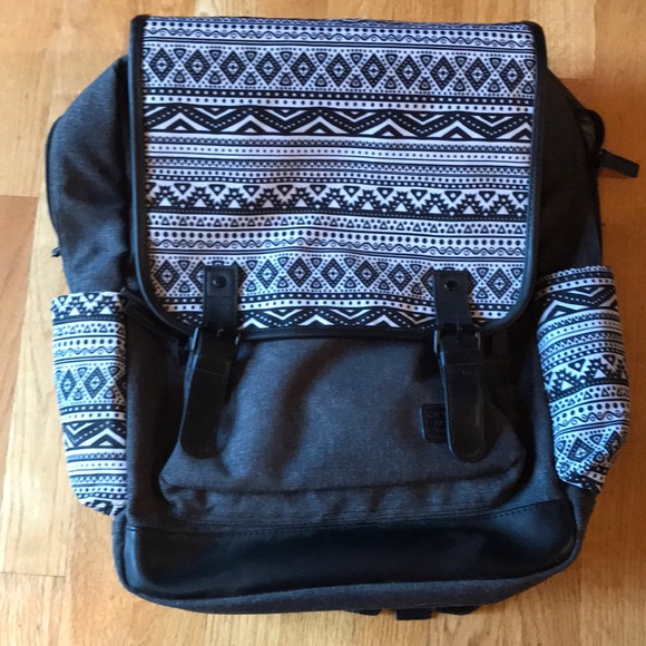 Great college backpack. Gray/black/white pattern backpack with nice interior laptop pocket. A good size to use for college, plenty of room. Only used for one semester. Great condition except for pink on Velcro inside as pictured, probably from highlighter. JWorld New York brand.